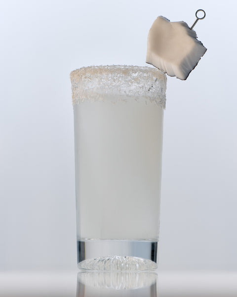 Salt the glass rim, add ice, and mix in the tequila coco and pineapple juice. Top with the sparkling coconut water.